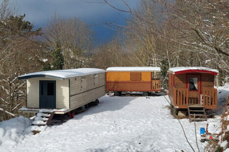 Notre capacité d’ hébergement, entre gîtes et roulottes, est de 14 personnes au total.